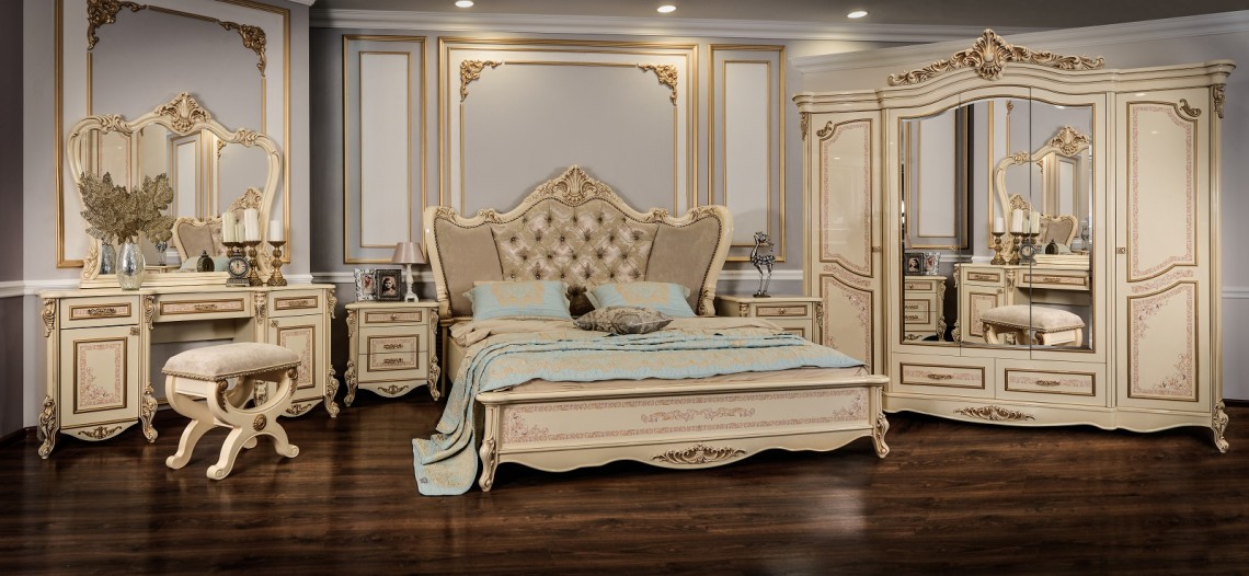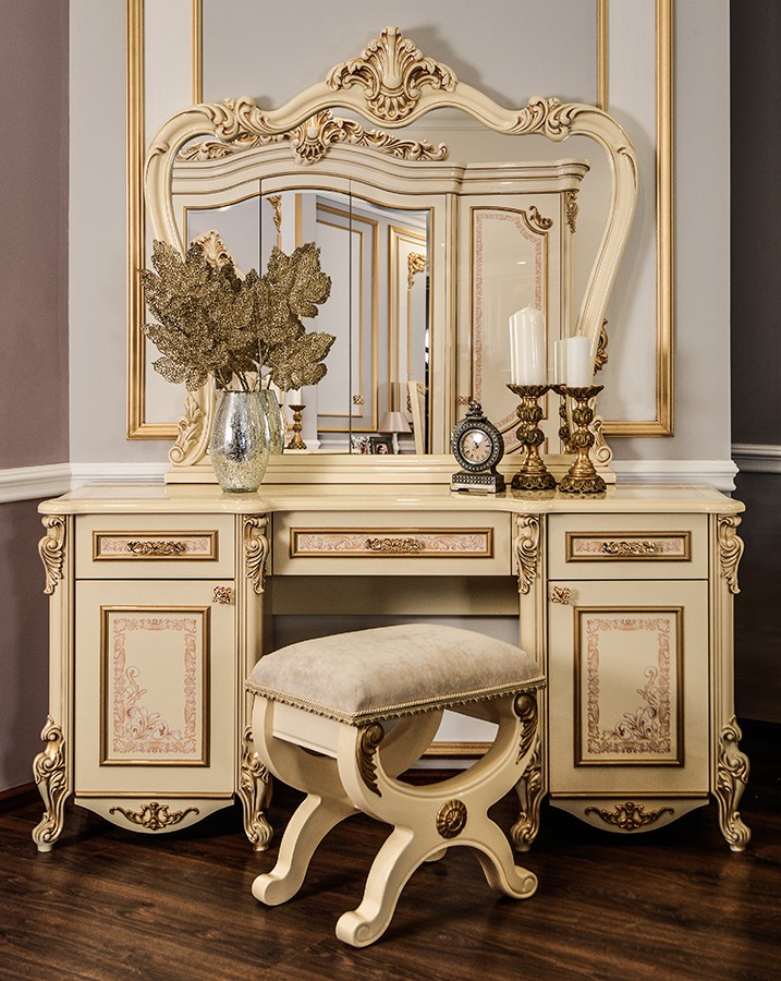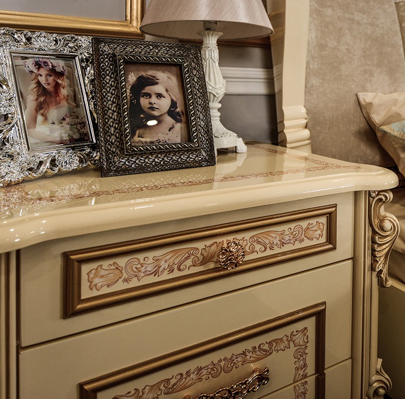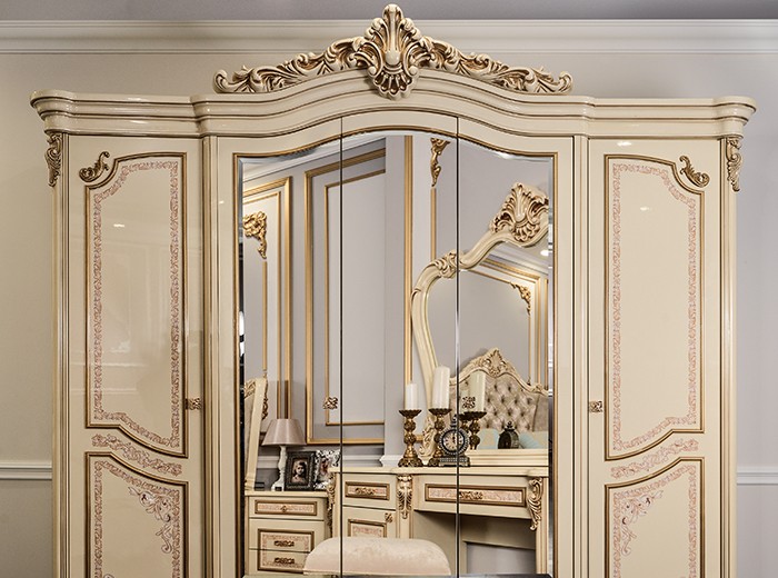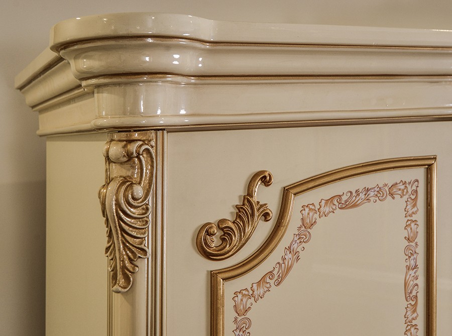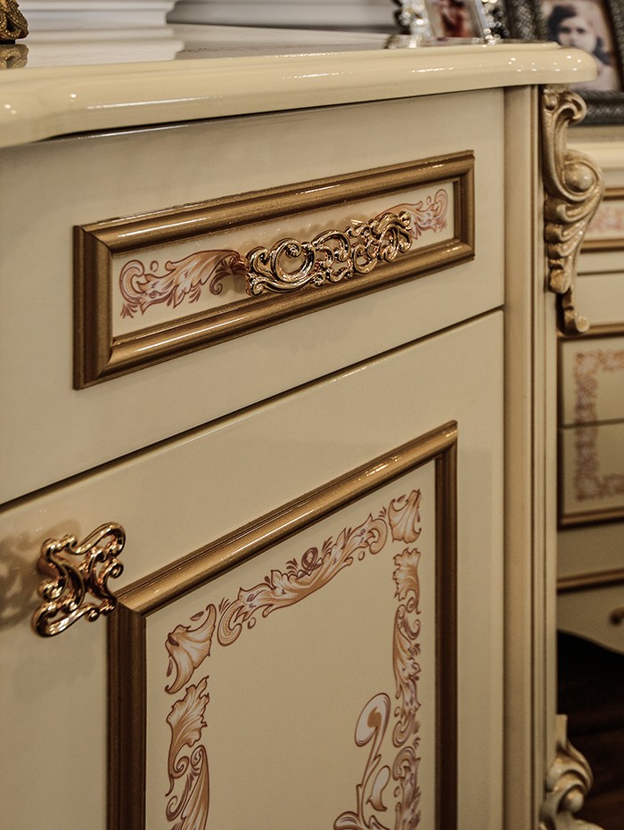 Декоративные элементы, фасады, накладки покрыты золотой патиной и матовым лаком