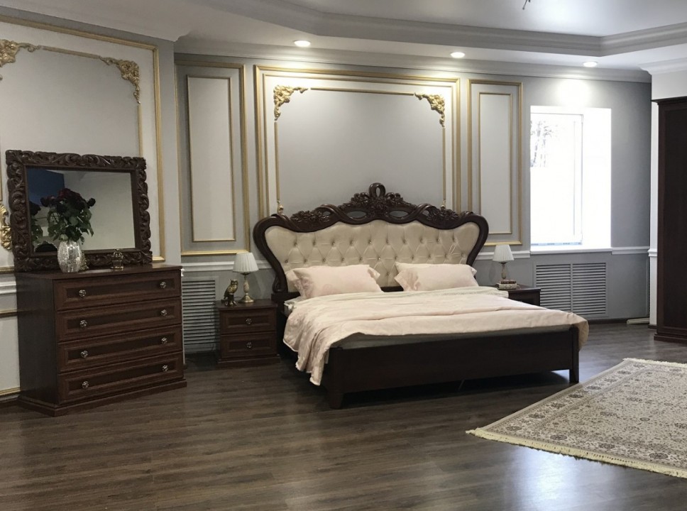 Декоративные элементы, фасады, накладки покрыты темной патиной и матовым лаком на водной основе