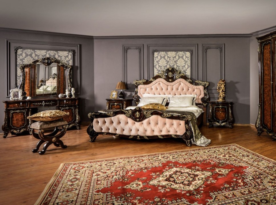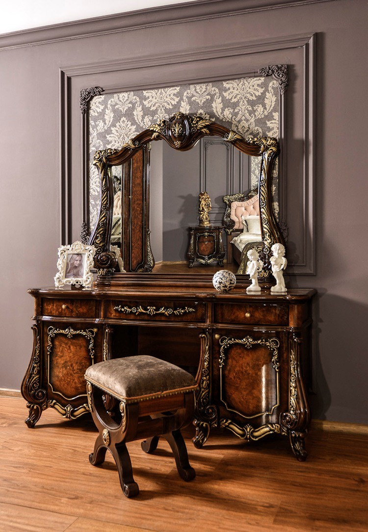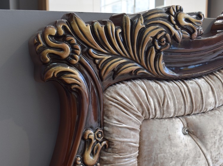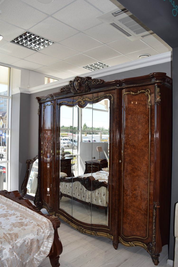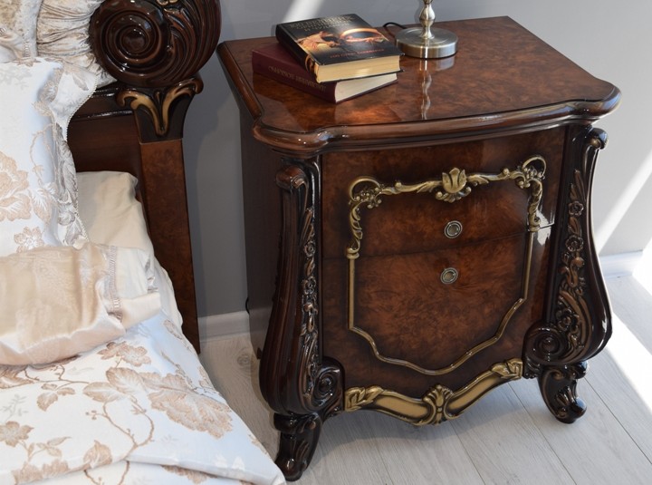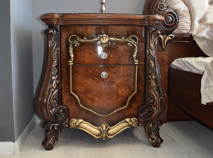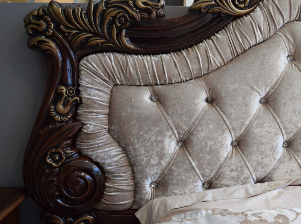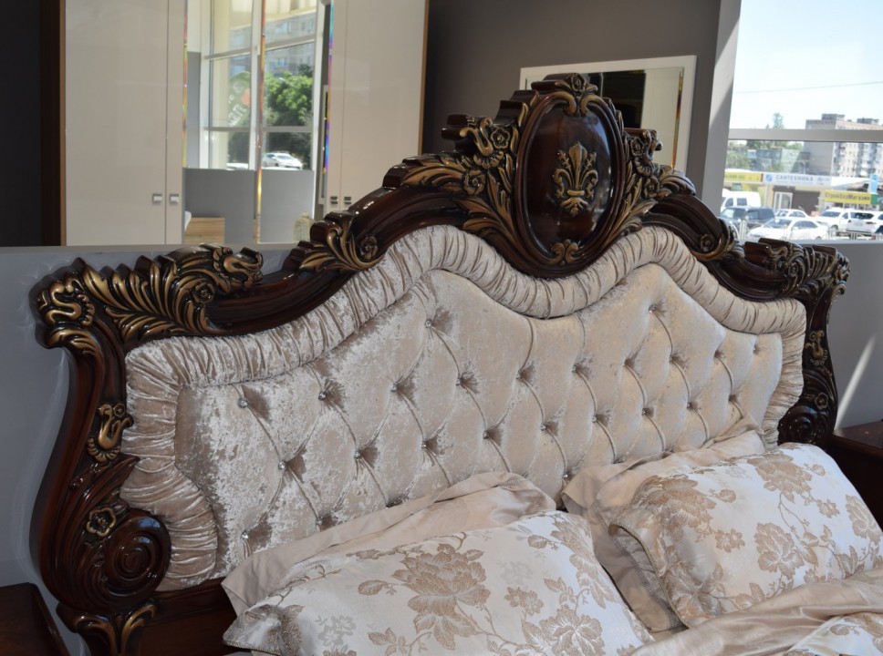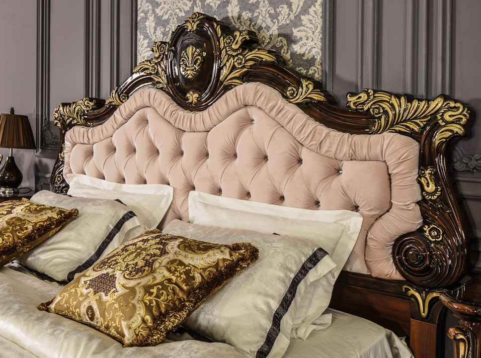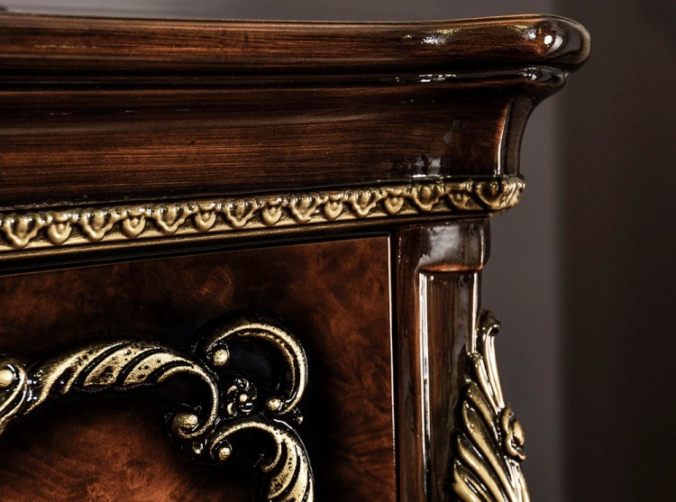 Коллекция «Марселла» поистине королевская спальня эпохи Людовика XIV. Все элементы декора, гербы, фестоны, ленты, лавры, линии и пышные завитки выполнены с поразительной точностью и изяществом. Данная мебель перенесет Вас в эпоху царского Версаля.