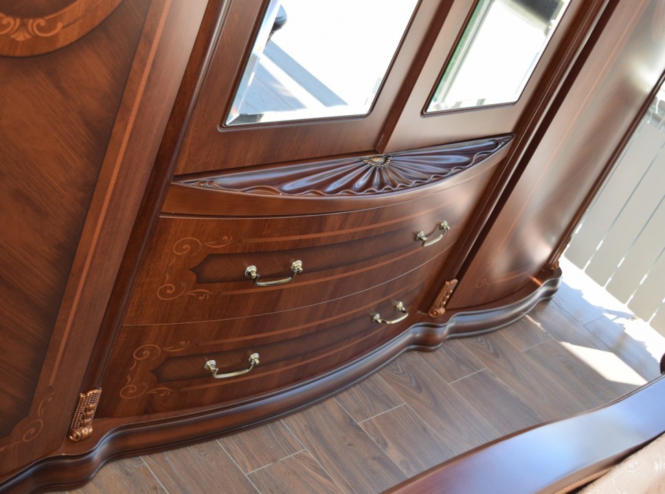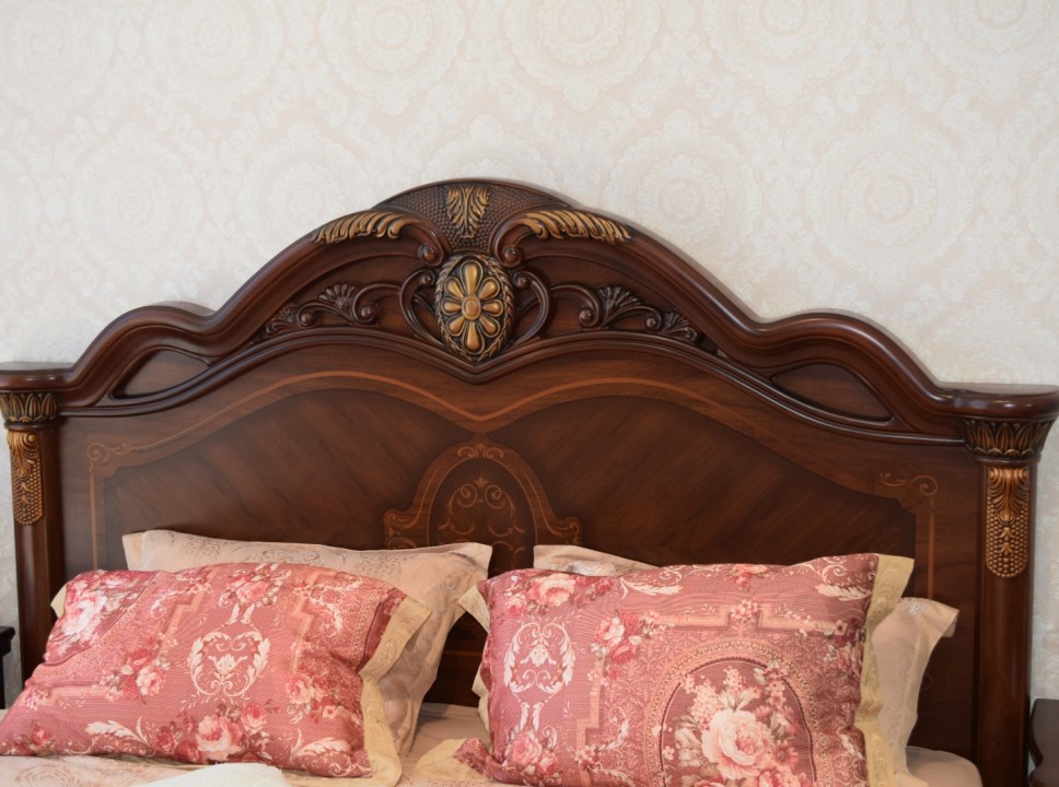 Экстравагантный стиль «barocco» придает комплекту величественный стиль и ненавязчивую претенциозность, благодаря чему спальный гарнитур пользуется огромным спросом.