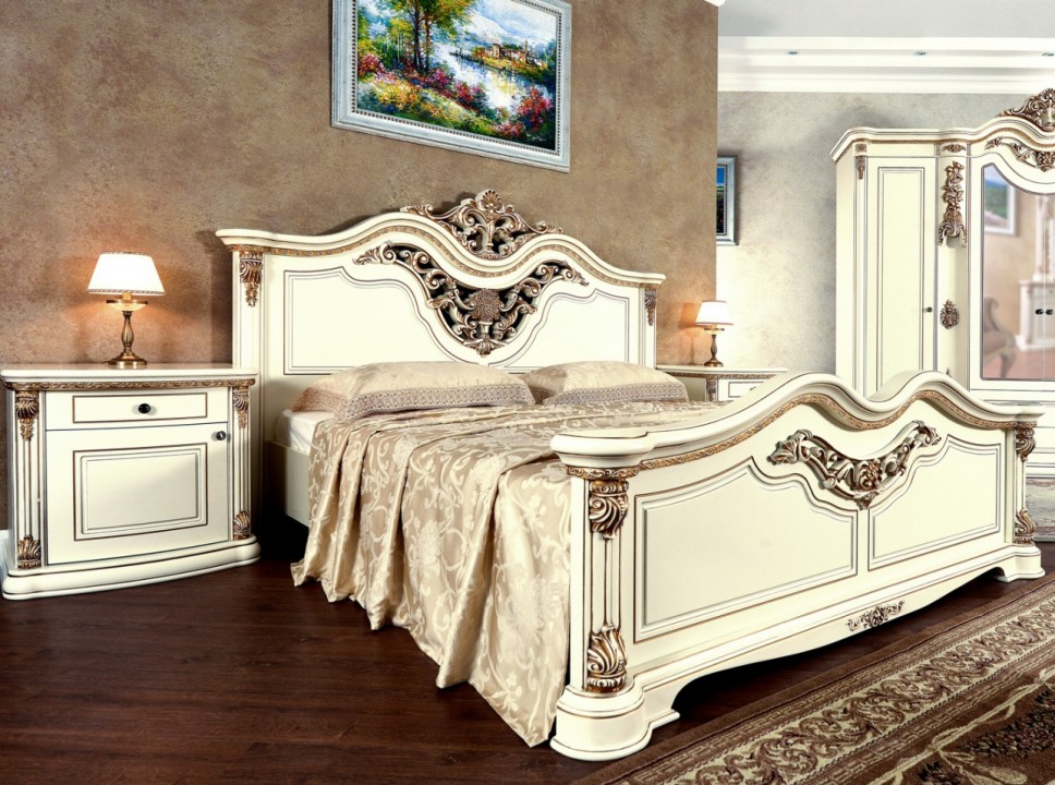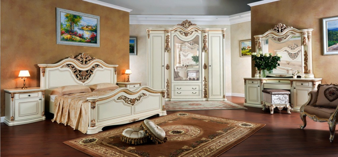 Спальня «Габриэлла» включает в себя: оригинальную кровать в стиле «barocco», великолепные прикроватные тумбочки, вместительный шкаф, туалетный столик, которые создают в Вашей спальне атмосферу королевской роскоши и подарят великолепный отдых.
