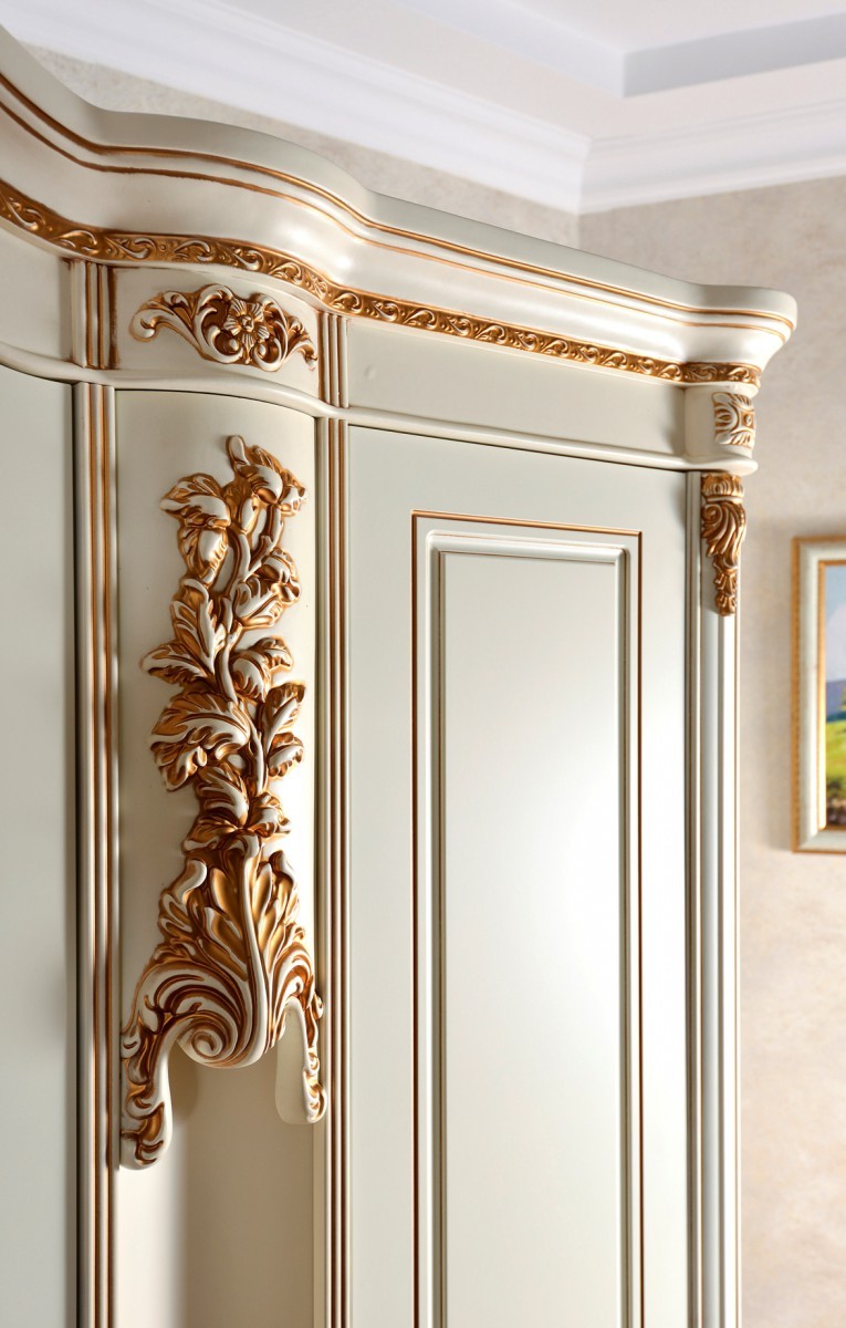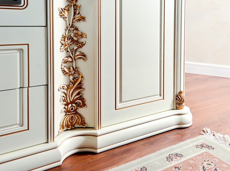 Декоративные элементы, фасады, накладки покрыты золотой и темной патиной и матовым лаком