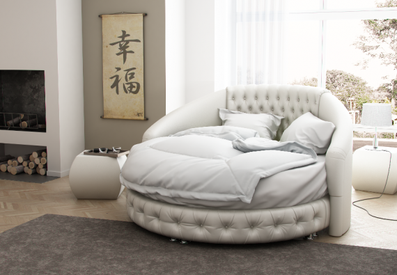 Изысканная кровать круглой формы в итальянском стиле станет центром притяжения внимания в любой спальне. Будет ли это стильная кожа сливочного цвета, мягкая замша бархатистого коричневого или другие фактуры и оттенки – в зависимости от выбора материала вы создадите ту атмосферу, которую пожелаете. Однако в любом случае облик вашего интерьера будет неповторим. Возможно декорирование стразами Swarovski.