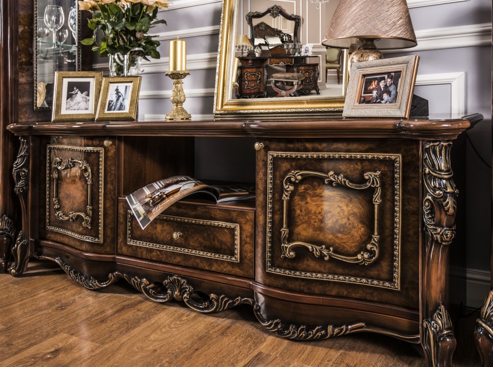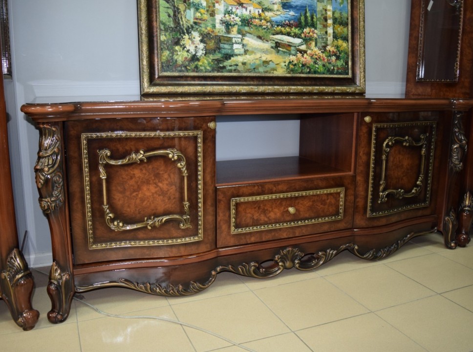 Если вы хотите создать в своем доме неповторимую обстановку тепла и уюта, гостиная «Джоконда» обладает всеми необходимыми качествами для этого. Являясь ярким представителем нетленной классики, она насыщена цветом и золочением декоров. Неповторимую вальяжность данной коллекции придают массивные объемные декоры, которые, в сочетании с резными элементами балясин, выглядят достаточно эффектно.