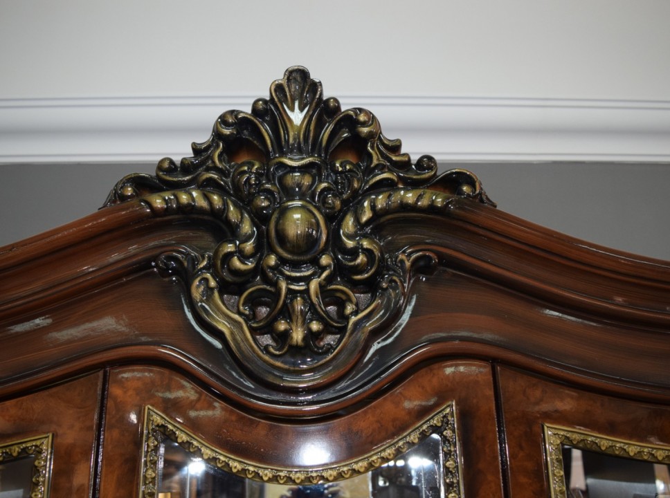 Декоративные элементы, фасады, накладки покрыты золотой патиной, темной патиной и глянцевым лаком на водной основе