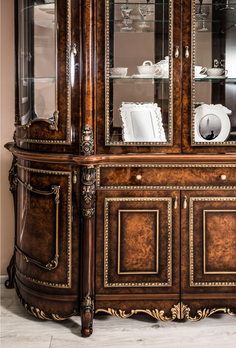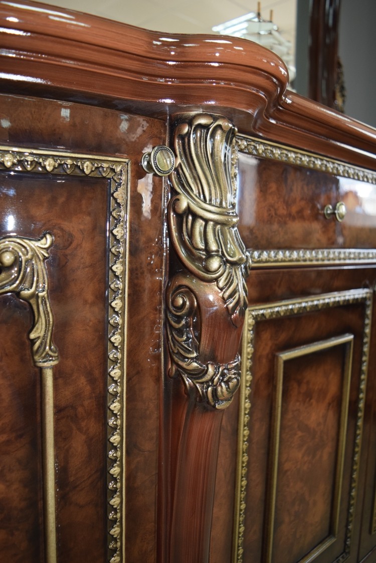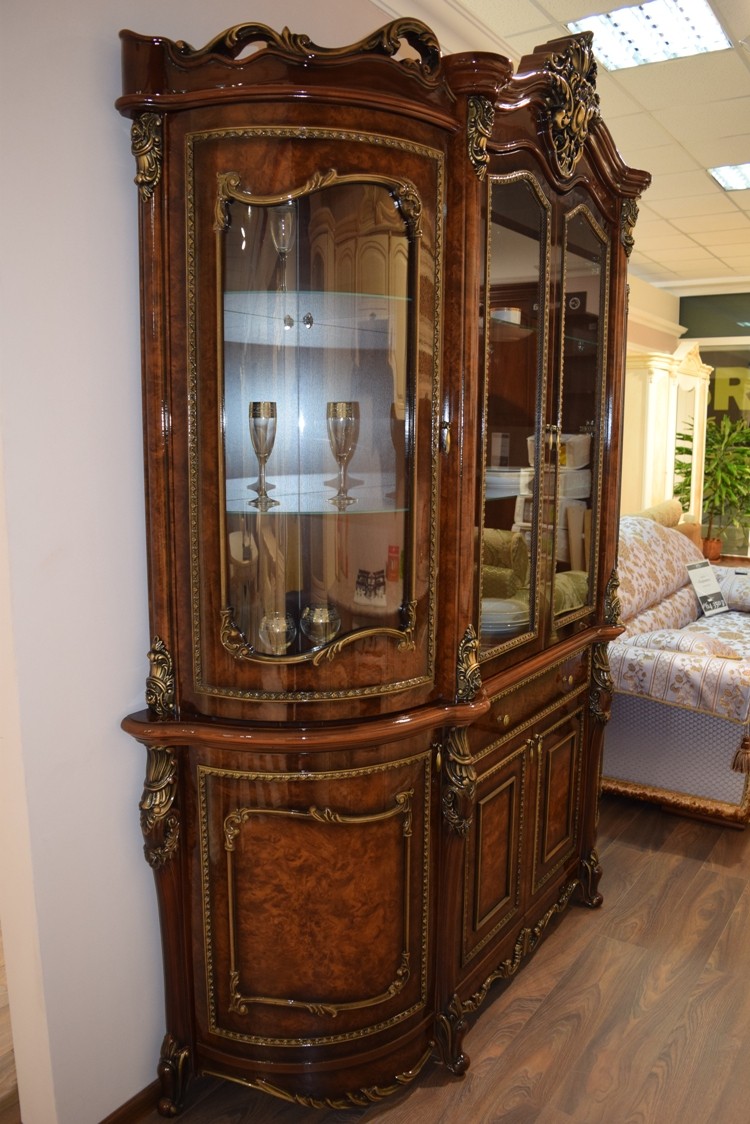 Сервант «Джоконда» – это лучший представитель традиционного итальянского стиля. Каждый предмет мебели достоин называться царским. Несмотря на простоту силуэтов, они обладают элегантными формами, плавными изогнутыми линиями, аристократическими резными вставками и декоративными элементами.