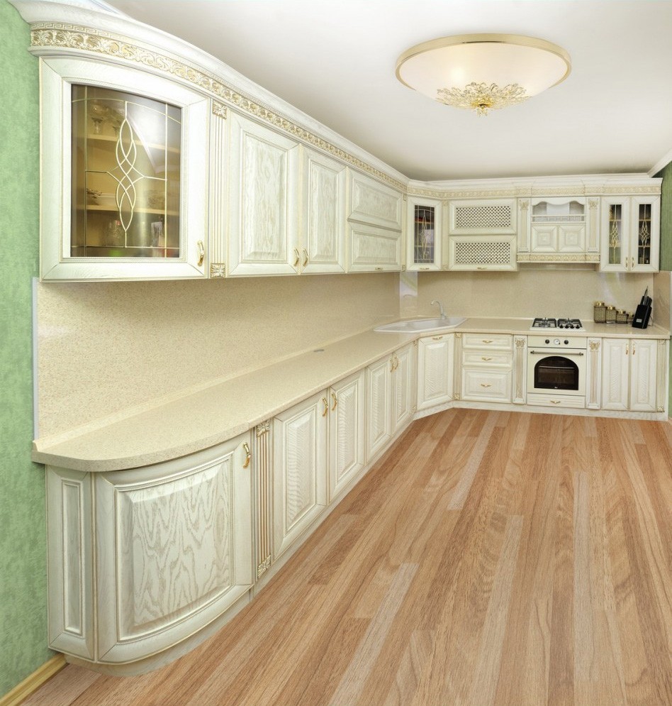 Кухня Верона угловая 4,1х1,4 м. крем глянец