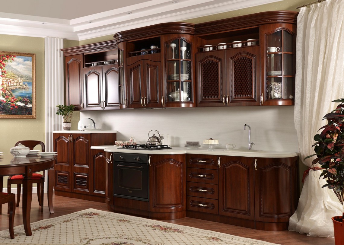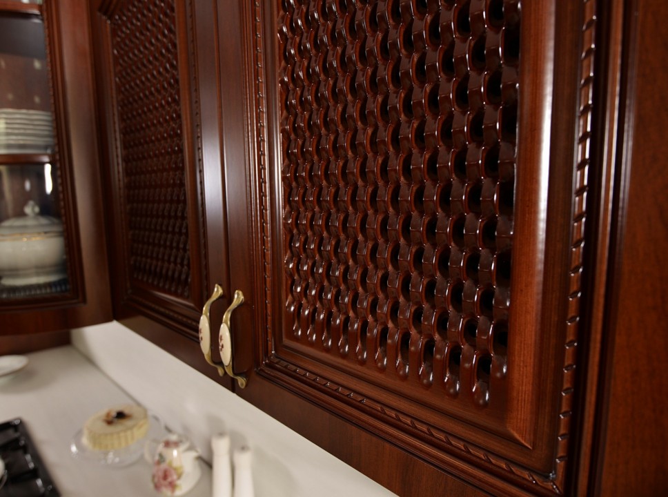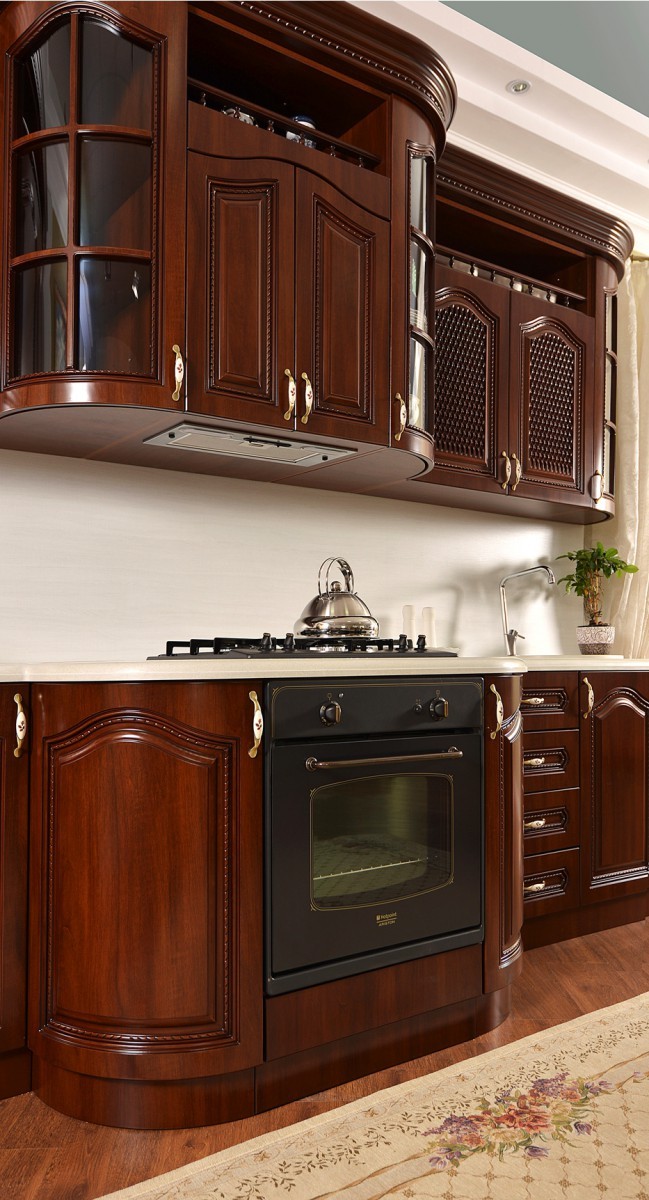 Декоративные элементы, фасады, накладки покрыты темной патиной и матовым лаком