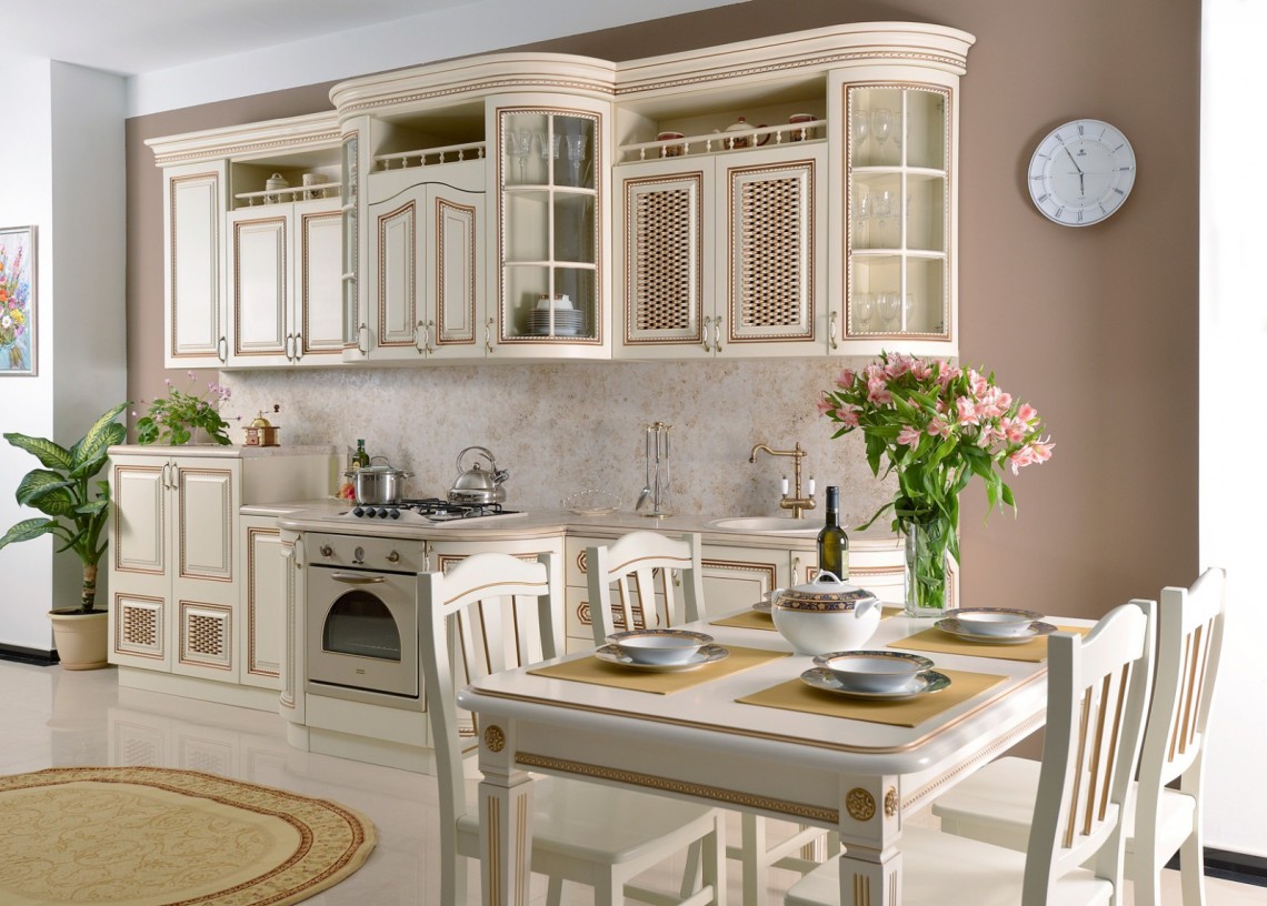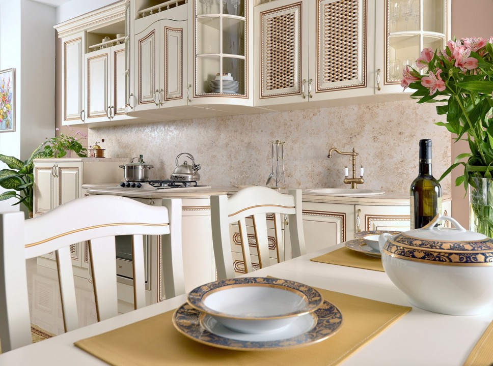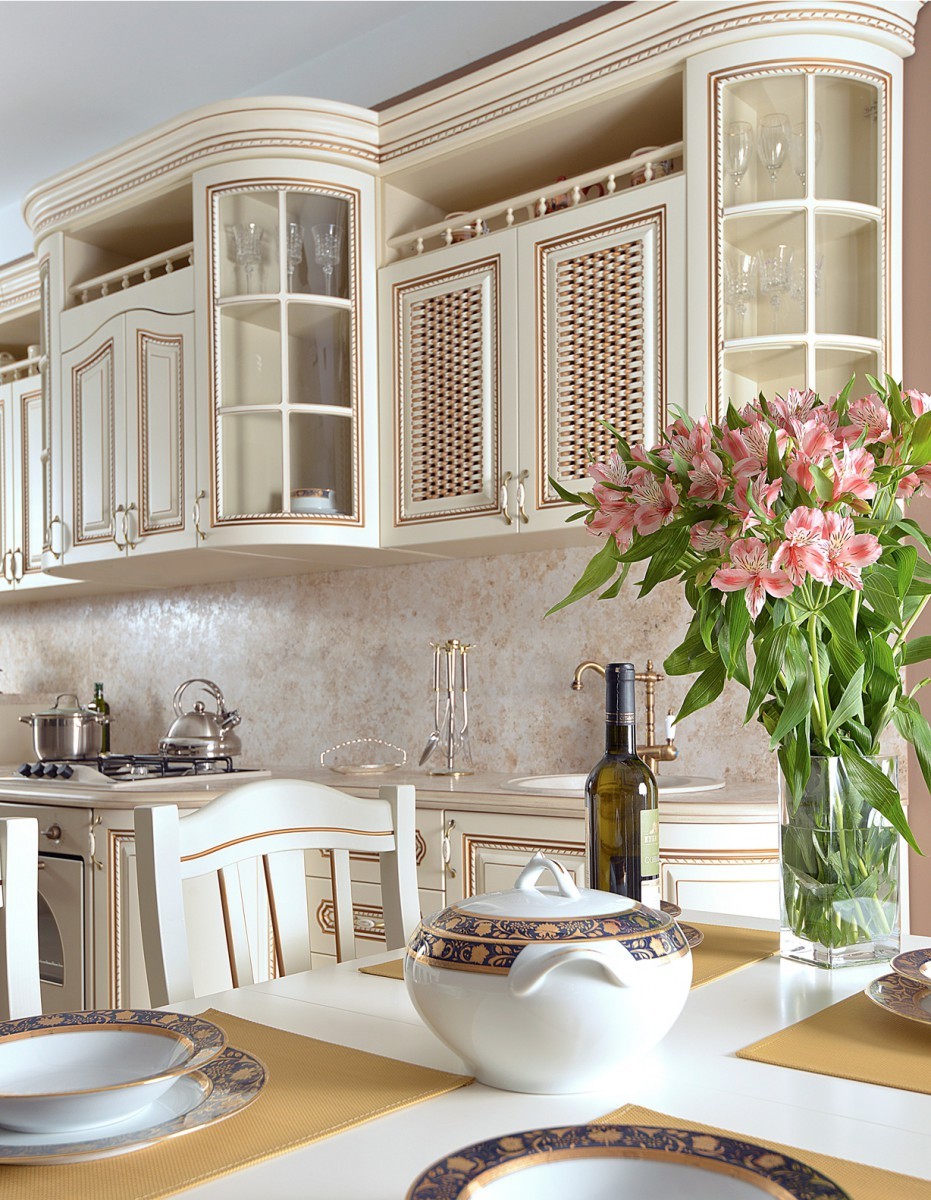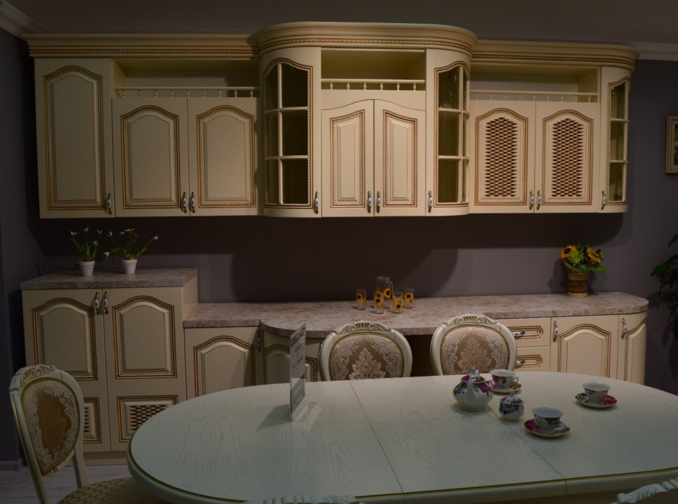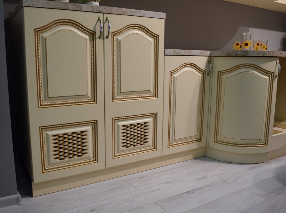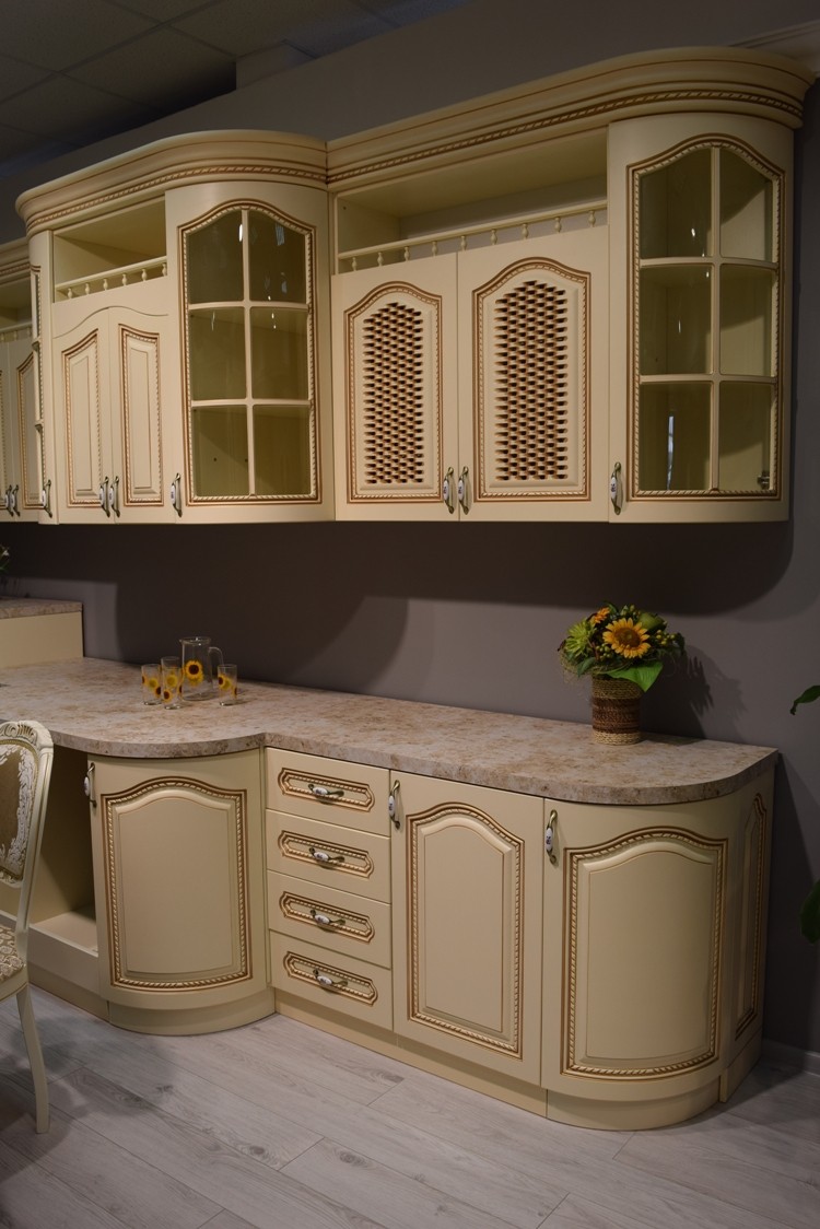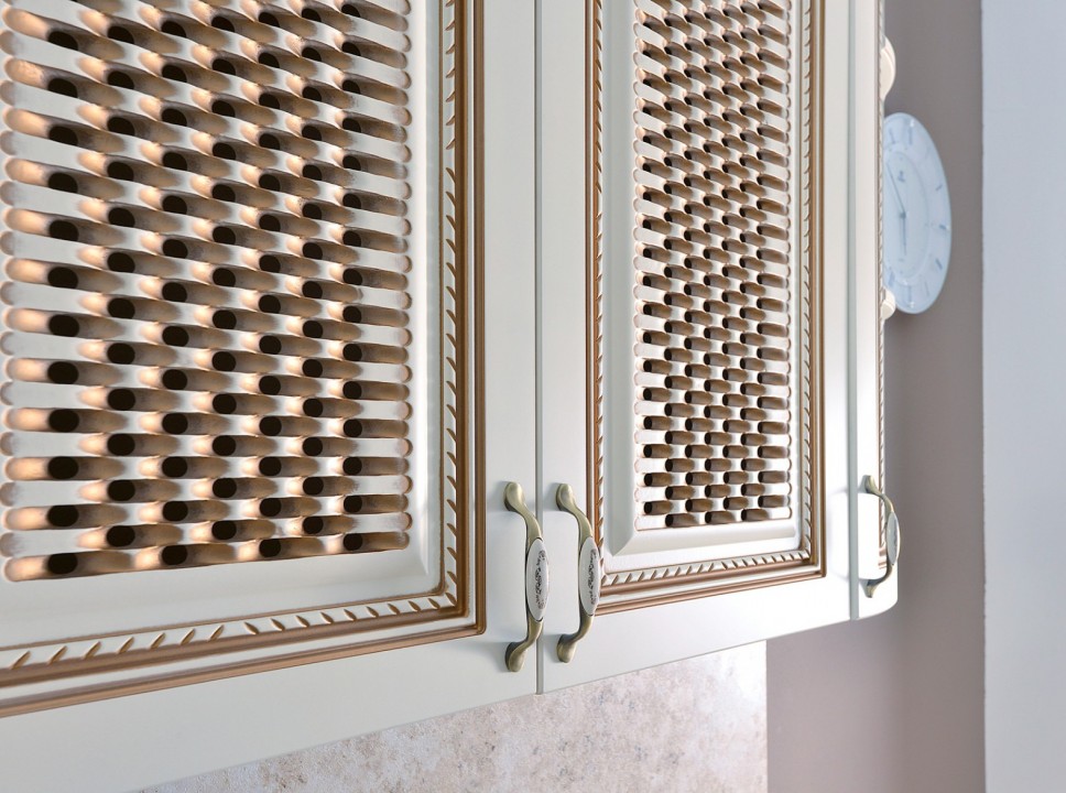 Декоративные элементы, фасады, накладки покрыты золотой патиной и матовым лаком