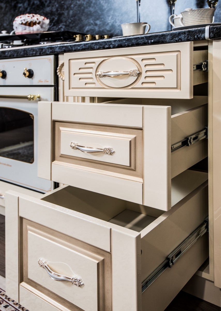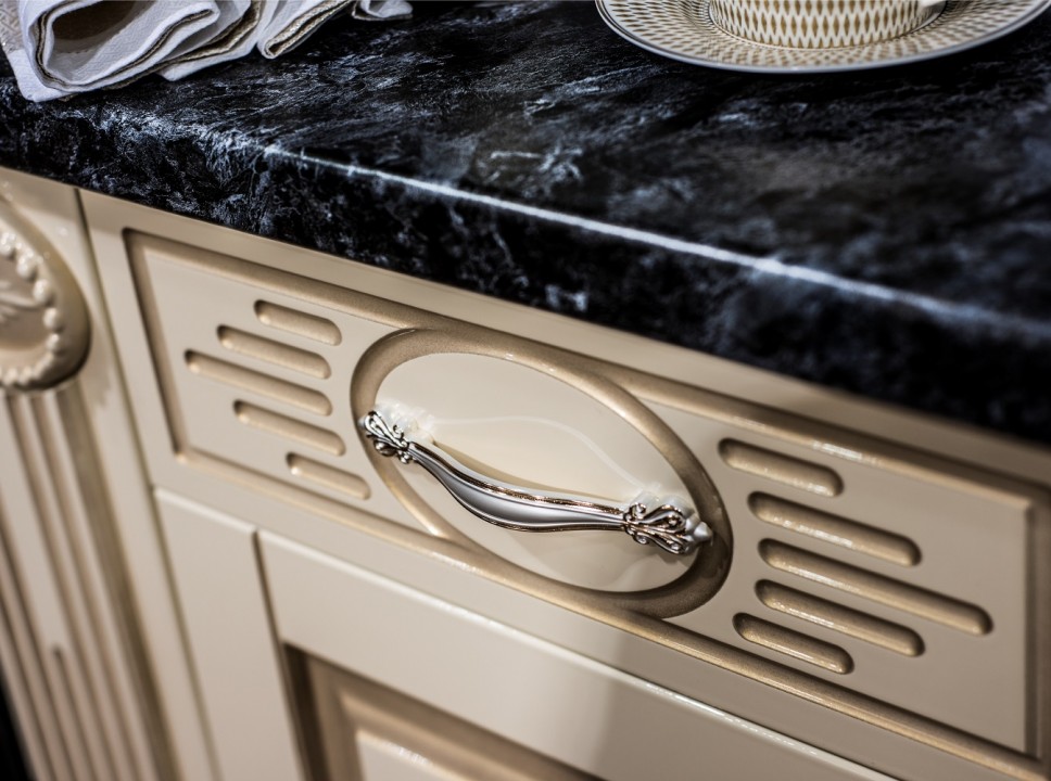 Декоративные элементы, фасады, накладки покрыты золотой патиной и матовым лаком