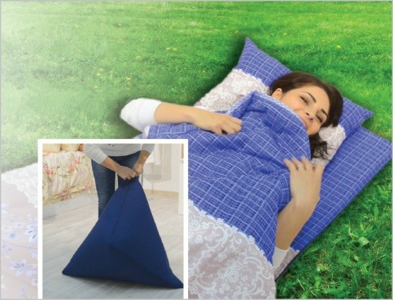 В собранном виде это мягкое кресло, а в разложенном — удобное спальное место с подушкой и одеялом.