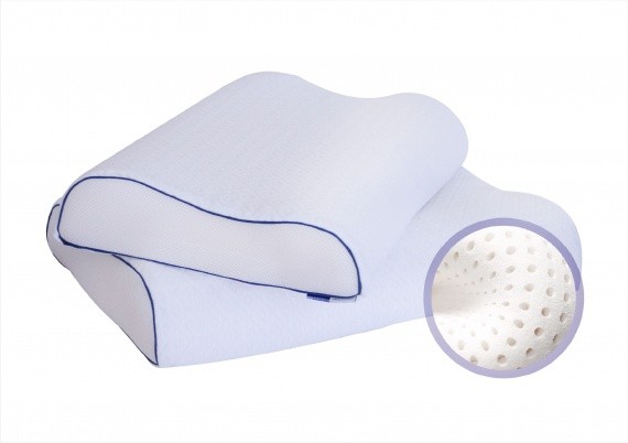 - Подушка из 100% латекса имеет два уровня высоты в форме валиков.