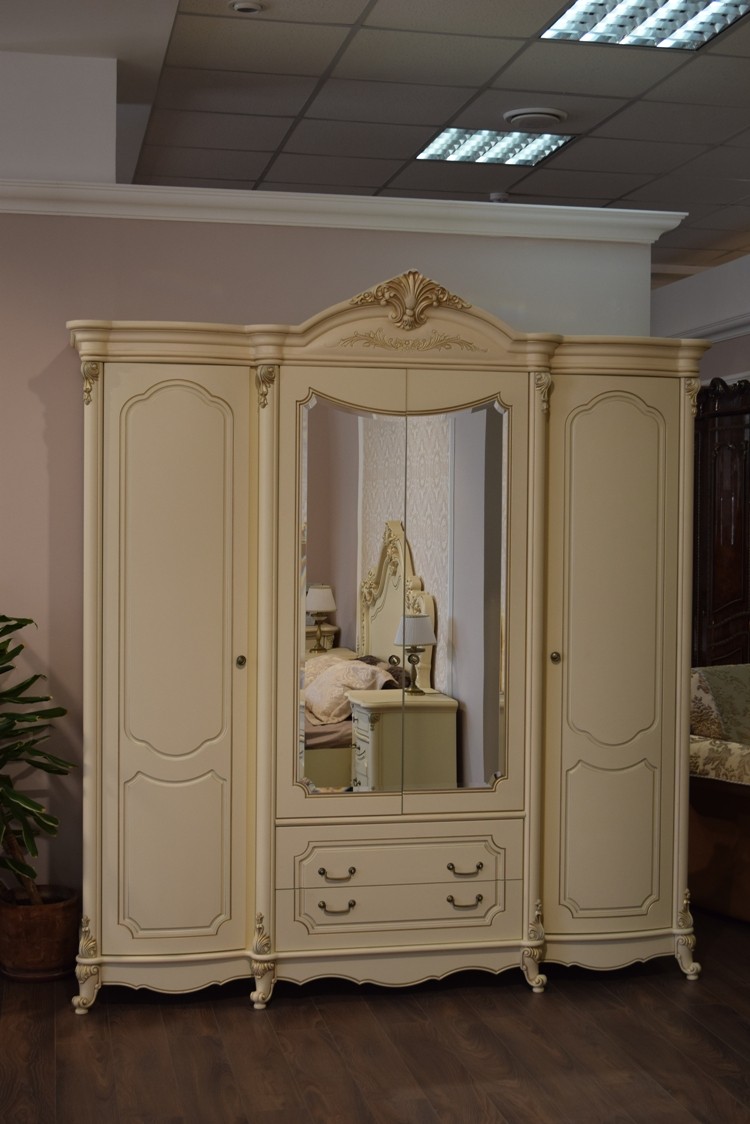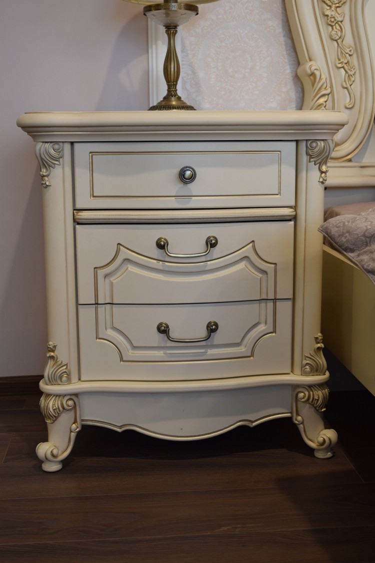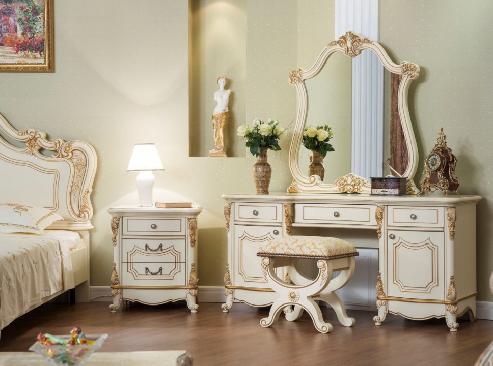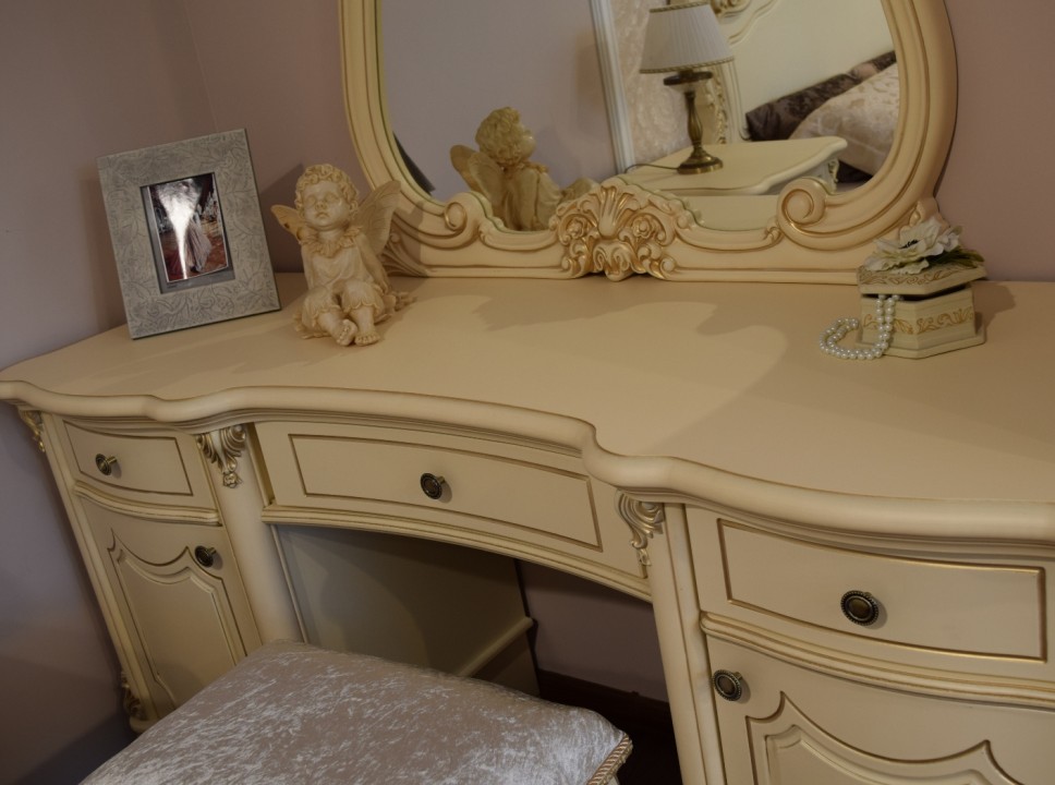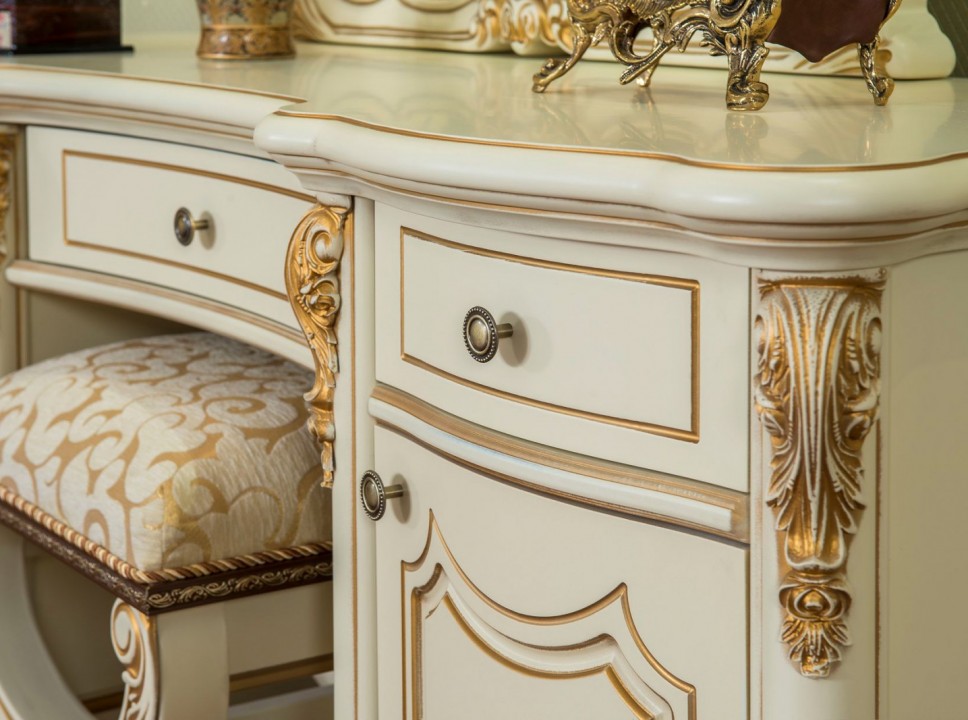 Декоративные элементы, фасады, накладки покрыты золотой патиной и матовым лаком на водной основе