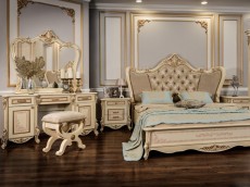 Коллекция «Марселла» поистине королевская спальня эпохи Людовика XIV. Все элементы декора, гербы, фестоны, ленты, лавры, линии и пышные завитки выполнены с поразительной ...