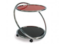 верхняя столешница и полка изготовлены из калёного стекла толщиной 6 мм; дизайн обработки стекла выполнен методом покраски; подстолье металл, h=570 мм, покрытие хром, имеет колесные ...