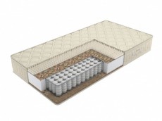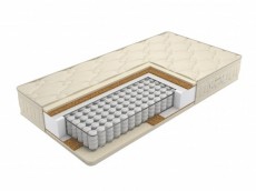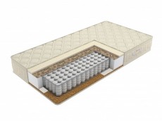 Матрас разносторонней жесткости на основе пружинной системы Pocket Spring. Ткань с обработкой Aloe Vera в рельефной срежке. Двойная плита латексированной кокосовой койры и слой наполнителя би-кокоса ...
